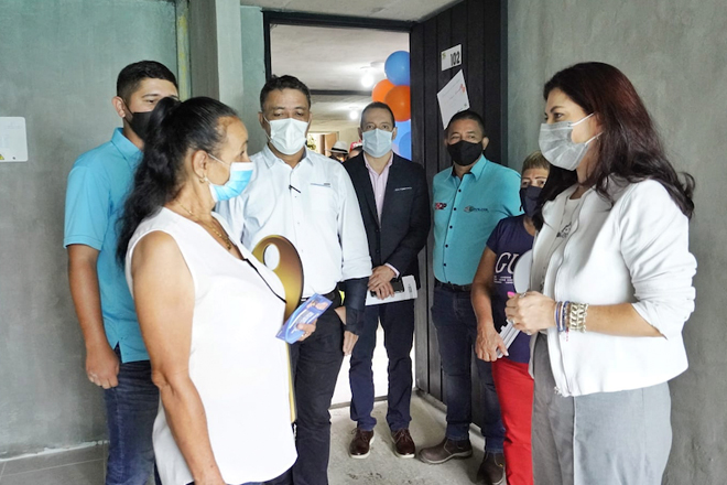 Dosquebradas (Risaralda), 6 de octubre de 2021. El Gobierno Nacional, a través del Fondo Adaptación, entregó este miércoles 20 apartamentos que benefician a 90 personas del municipio de Dosquebradas, que se encontraban en zona de riesgo no mitigable.